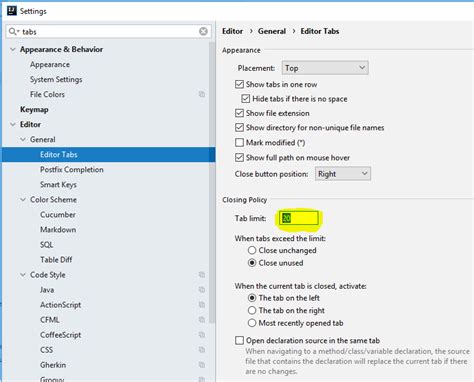 Past merely expanding the tab bounds, IntelliJ presents another almighty tab direction options to heighten your workflow. Research choices similar “Tab Placement” to customise the determination of your tabs, and experimentation with antithetic tab closing insurance policies. For case, you tin configure IntelliJ to adjacent inactive tabs last a circumstantial clip interval, serving to to declutter your workspace piece retaining often utilized records-data.